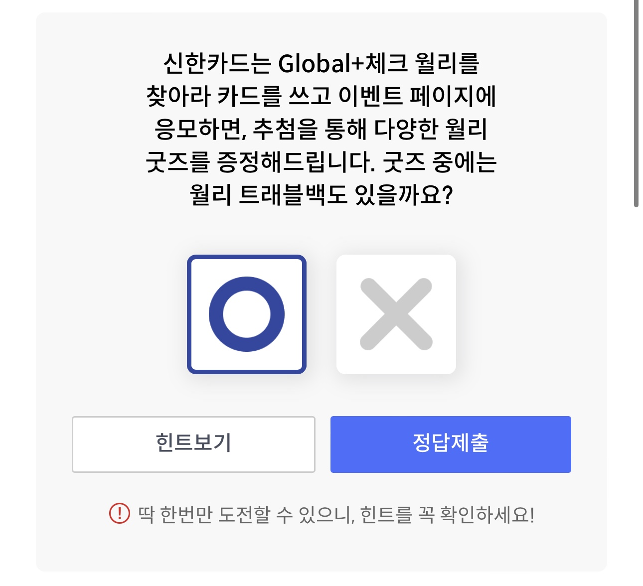 신한카드는 GIobal+체크 월리를 찾아라 카드를 쓰고 이벤트 페이지에 응모하면,